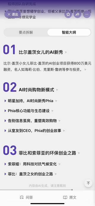 它并不是让我们换了个地方阅读文章,而是把每篇文章都整合成——包括内容速览、要点拆解、智能大纲几个部分的框架:
