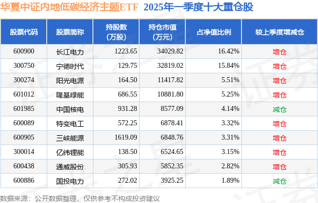 本站消息盛鹏配资,日前华夏中证内地低碳经济主题ETF基金公布一季报,2025年一季度最新规模20.72亿元,季度净值涨幅为-5.5%。